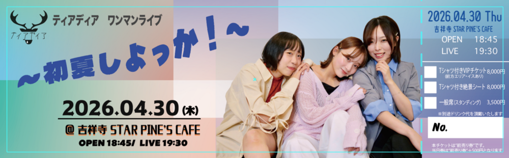 ※各種チケット代の他、ご来場時に別途ドリンク代を頂戴いたします